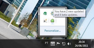 Ele mostra que tenho dois novos programas para atualizar e quatro programas na versão beta para serem atualizados. Ao clicar duas vezes no ícone do programa, surgira uma pagina da web com os programas que precisam ser atualizados de forma detalhada. Veja!