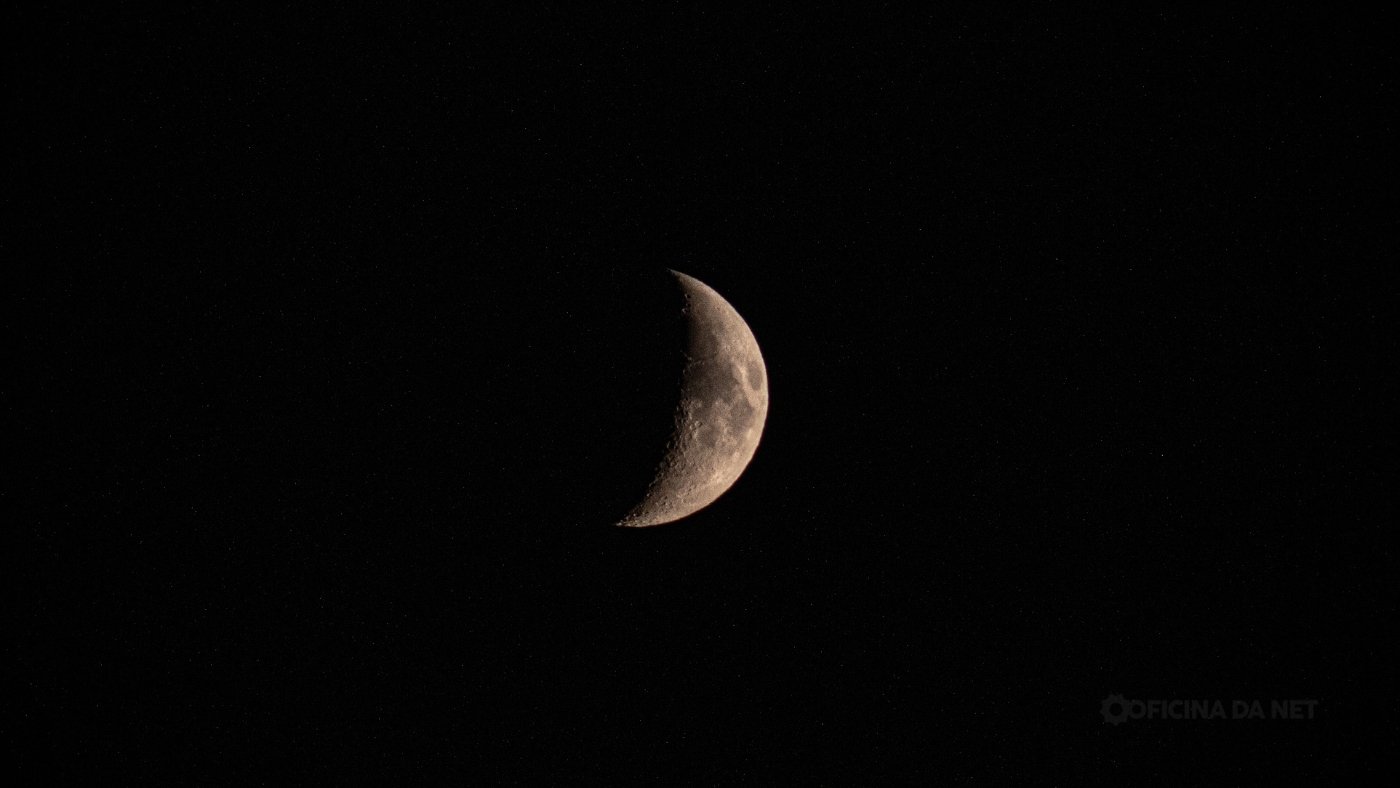 Quem tem binóculo ou telescópio pode aproveitar para ver crateras e montanhas com sombras bem destacadas na faixa entre claro e escuro, o chamado "terminador".