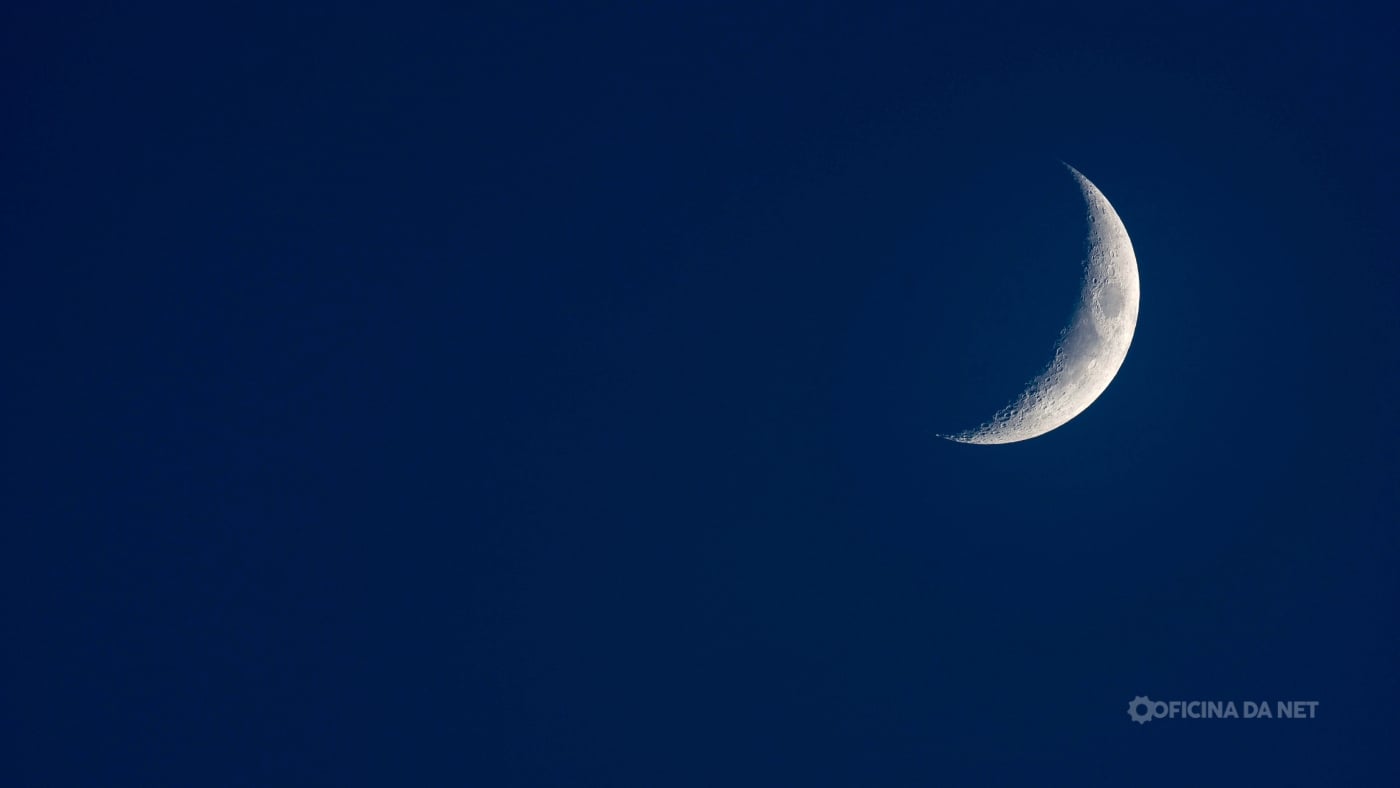 Com cerca de 16% de visibilidade, a Lua entra agora naquele visual de "restinho" de luz: um arco fino que vai encolhendo dia após dia. Mesmo sem estar totalmente "invisível", ela já interfere bem menos no céu noturno do que nas fases mais iluminadas. Se ontem ela já estava discreta, hoje fica mais ainda, principalmente quando comparada ao começo do mês.