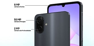 Galaxy A07 4G: oferece um conjunto duplo, com sensor principal de 50 MP e um de profundidade de 2 MP. A lente de selfies soma 8 MP e ele também filma em até Full HD a 30 fps.