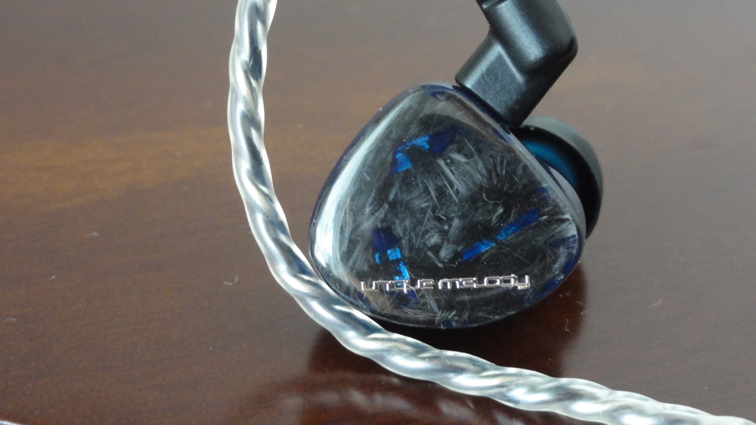 A construção do Mini Mest da Unique Melody é impecável em minha opinião. Isso vai desde seu cabo, que é bem flexível e não embola com facilidade, até o material utilizado em sua concha (shell), que passa a sensação de muita solidez, além de ter uma faceplate muito bonita, onde há fibra de carbono e uma cor azul com uma tonalidade linda ao fundo.