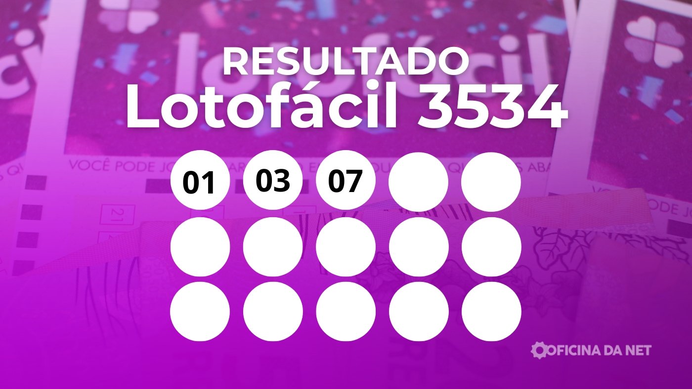 As quinze dezenas sorteadas da Lotofácil 3534 foram: