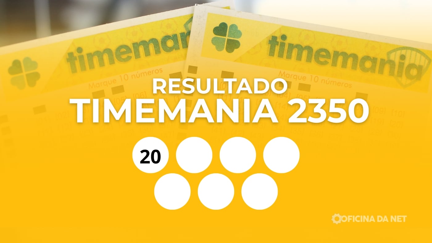 O sorteio do concurso 2350 da Timemania realizado na noite de quinta, 29 de janeiro, às 21h (horário de Brasília), no Espaço da Sorte, em São Paulo. Como de costume, o evento foi transmitido ao vivo pelo canal oficial da Caixa no YouTube e também pela RedeTV!. O prêmio estiumado é de R$ 4,5 milhões. Com as dezenas foram sorteadas, aguardaremos a apuração da Caixa com o resultado completo de quem ganhou.