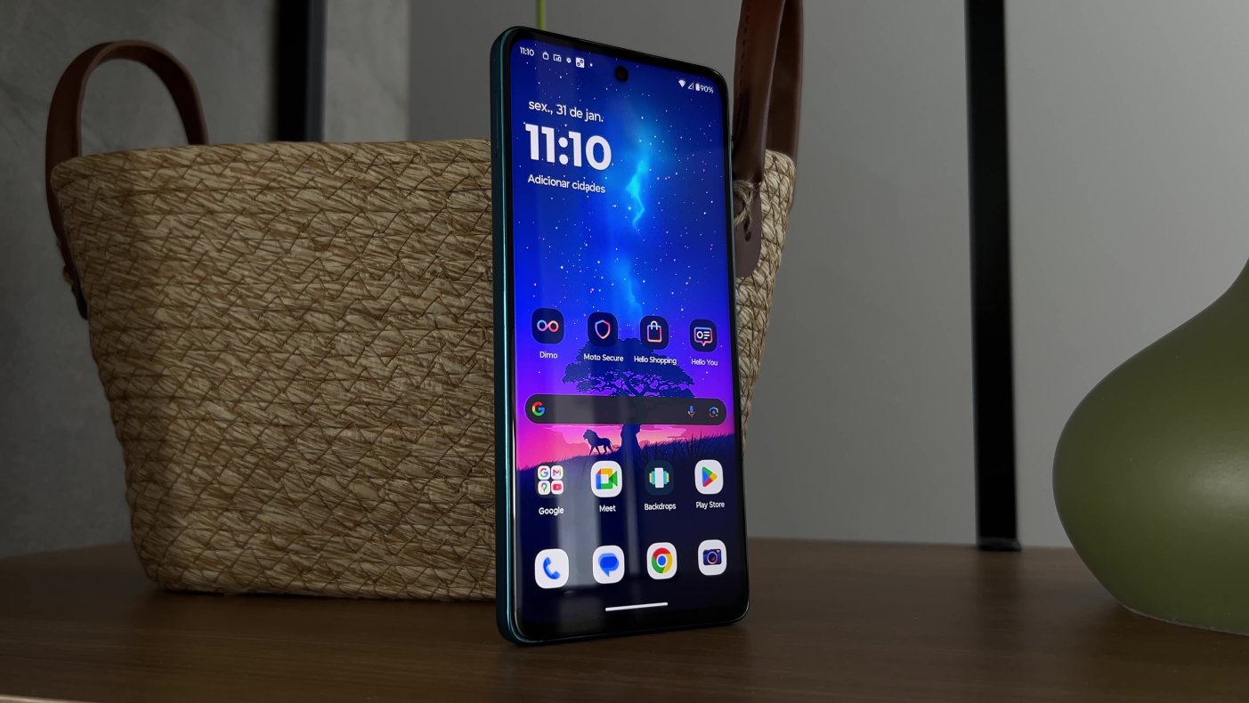 A bateria de 5.000 mAh oferece excelente autonomia, suportando carregamento rápido de 30W. O dispositivo também conta com alto-falantes estéreo com Dolby Atmos, NFC e roda a interface Hello UI baseada no Android 14, com promessa de 5 anos de atualizações de sistema e 6 anos de segurança.