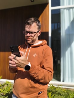 Nas selfies, o sensor de 32 MP mantém o bom nível, mesmo em cenários com pouca luz. As fotos podem puxar um pouco para o quente demais no tom de pele, mas isso é uma característica da calibração da Motorola, não um defeito em si. Comparado ao Galaxy A56, o Edge 50 Neo se sai tão bem quanto e em alguns pontos até melhor, como na presença da lente telefoto, que traz mais versatilidade para o dia a dia.