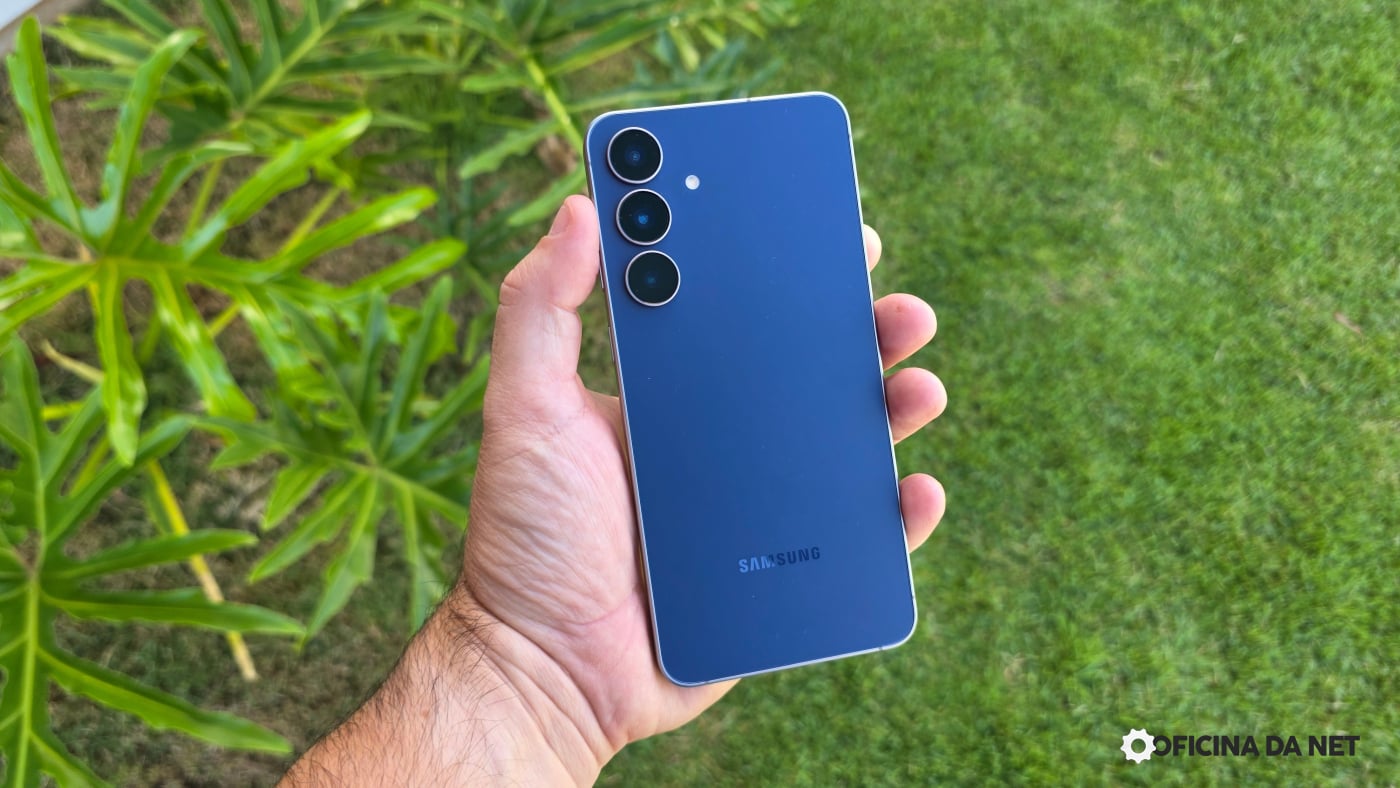 Em performance, o celular usa um processador Exynos 2400, que roda jogos e qualquer tipo de aplicativo mais pesado sem travar. Há também uma nova camara de vapor que agora ocupa 10% mais espaço e promete manter as temperaturar mais baixas durante uso intenso. Além disso, traz 8GB de RAM e até 512GB de armazenamento.
