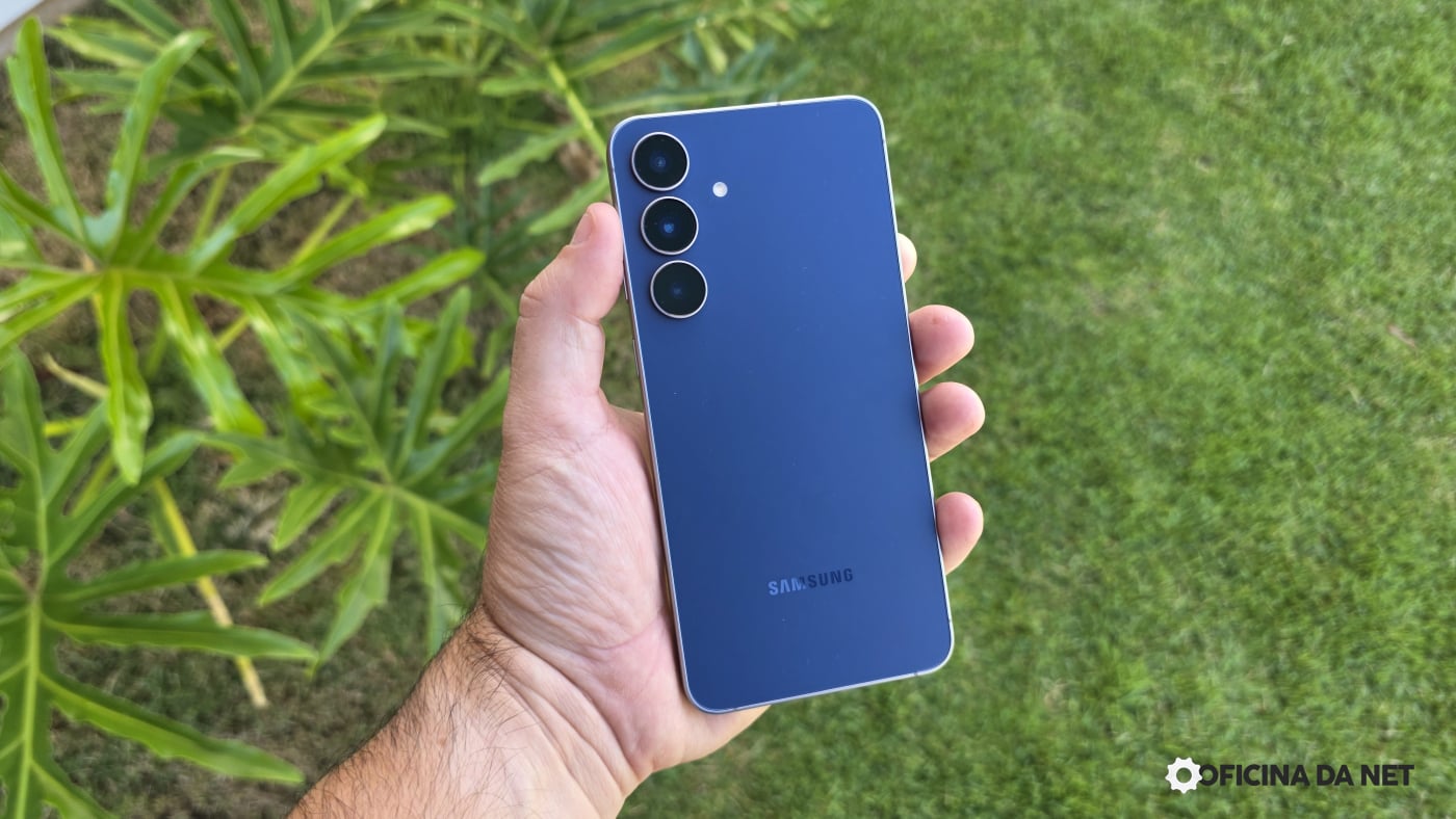Em termos de durabilidade, o aparelho utiliza o vidro Gorilla Glass Victus Plus tanto na frente quanto na traseira, além de manter a certificação IP68 de resistência à água e poeira. O display Dynamic AMOLED de 6,7 polegadas oferece excelente qualidade de imagem, com brilho de 1.900 nits, o que garante visibilidade clara mesmo sob a luz do sol.