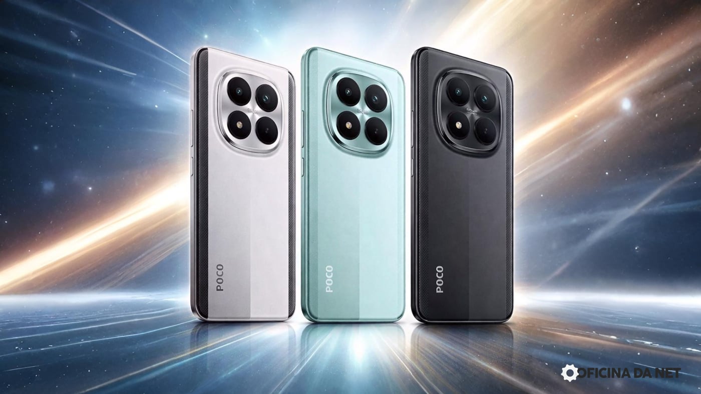 Para as fotos, a POCO adicionou uma lente principal de 50MP Light Fusion 800 com estabilização óptica (OIS) e uma lente ultrawide de 8MP. Para selfies, o aparelho utiliza uma câmera de 32MP. No entanto, seu grande diferencial está na sua capacidade de bateria, que atinge 6.500mAh e ainda suporta carregamento rápido de 100W. Além disso, traz certificação IP68, NFC e Bluetooth 5.4.