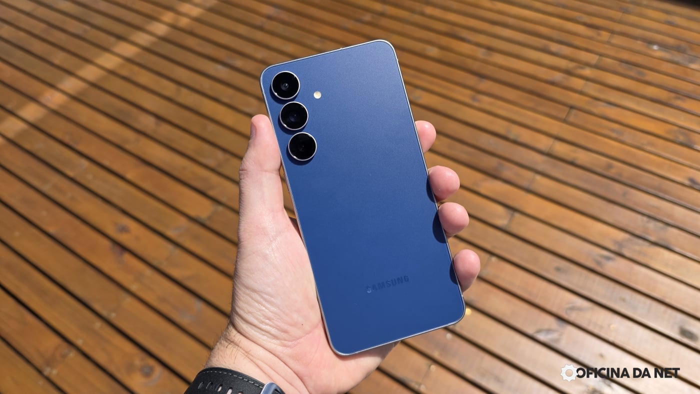 O conjunto de câmeras inclui sensor principal de 50 MP, lente teleobjetiva com zoom óptico de 3x e uma ultra-wide de 12 MP. A câmera frontal também grava em 4K a 60 fps. O aparelho mantém um padrão de imagem equilibrado, com bom nível de detalhe tanto em fotos quanto em vídeos.