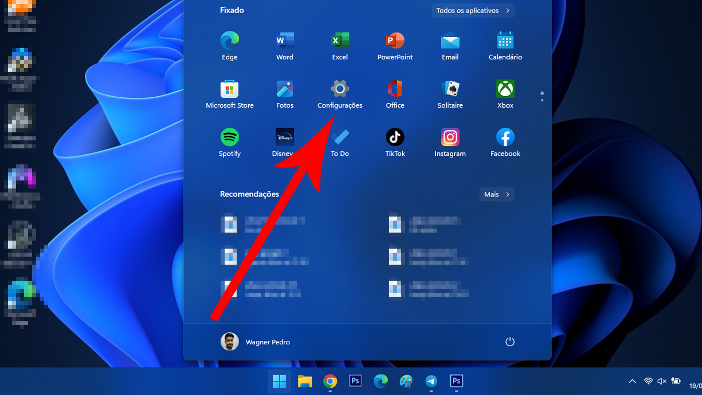 Clique no menu Iniciar (símbolo do Windows) na barra de tarefas;
