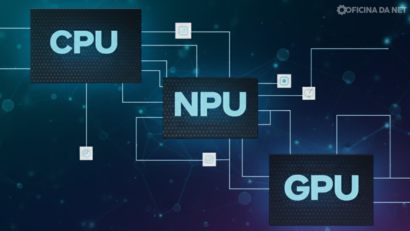 Embora trabalhem de forma integrada, a CPU, GPU e NPU têm propósitos diferentes. A CPU é o "cérebro", sendo responsável pela execução de tarefas lógicas, enquanto a GPU é voltada para o processamento visual, como a renderização de gráficos em jogos, por exemplo. A NPU, por outro lado, tem uma função principal: executar as tarefas de inteligência artificial.
