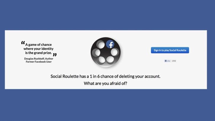 O game ou aplicativo é o Social Roulette, que funciona igual um jogo de roleta nos grandes Cassinos, sendo que ao jogar o usuário entra numa espécie de roleta russa, pois coloca em jogo a sua conta no Facebook e se perder a mesma será automaticamente apagada, mas se ganhar, uma mensagem é publicada no mural que diz o seguinte: "Eu joguei o Social Roulette e sobrevivi".