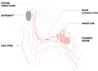O BATBAND funciona através de condução óssea. São transdutores que emitem ondas sonoras percebidas pelo seu ouvido interno. Assim seu ouvido externo fica livre para também receber as informações que o rodeiam.