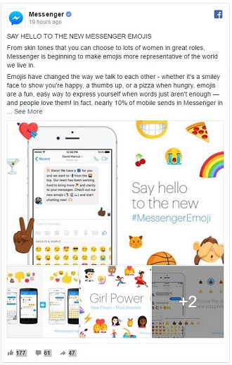 O anúncio foi feito através da página oficial do Messenger no Facebook, em que a empresa comenta que o mensageiro está trazendo novas opções multi-coloridas e até algumas sem gênero, e que todas as opções estão disponíveis através de um botão seletor de emojis no próprio app.