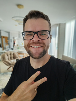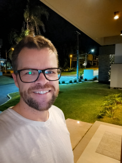 Eu tirei várias selfies com o Moto G35. Pelo que eu estava vendo na hora, as selfies são bem melhores que as fotos com a câmera principal. A minha dica é: se você quer tirar uma boa selfie com esse celular, procure um ambiente bem iluminado, mas não direto no sol e nem na sombra. O melhor exemplo que eu tenho de uma boa selfie é dentro de casa, onde as cortinas deixam entrar bastante luz natural e o celular consegue entregar um bom resultado.
