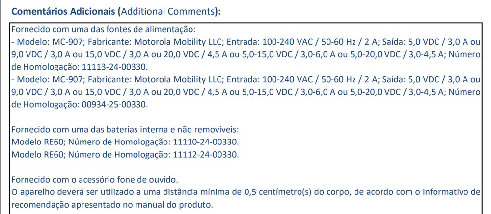 Dessa vez, o Edge 60 Pro foi homologado com o código de modelo XT2507-1. Em tese, é o mesmo modelo que já tinha passado pelo órgão regulador brasileiro, com uma diferença apenas na tecnologia de carregamento: o XT2503-1 traz carregador de 68 watts na caixa e agora o mais novo XT2507-1 oferece adaptador de 90 watts.