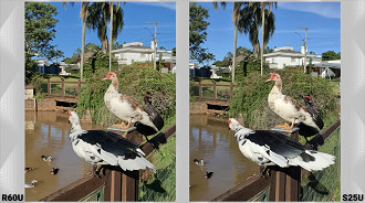 Comparamos o dobrável da Motorola com o Galaxy S25 Ultra, um dos melhores celulares da Samsung. Em nossos testes, o aparelho entregou excelentes resultados. Na foto dos patos, houve pouquíssima diferença, enquanto nessa contra o sol tem um flare na lente do Razr que não há no S25 Ultra, talvez por conta dos anéis que colocarem em volta dos sensores. No geral, as duas imagens estão ótimas.
