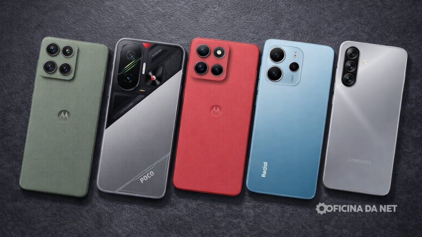 Nesta seleção, reunimos cinco celulares com 256 GB que realmente estão compensando agora no começo do ano, levando em conta muito mais do que o tamanho da memóra, mas também o desempenho, conjunto de câmeras, tela, bateria e, claro, o preço praticado atualmente. A lista passa por modelos que vão do intermediário equilibrado ao quase premium, como Edge 60 Pro, POCO F7, Moto G86, Redmi Note 14 5G e Galaxy A17 4G, cada um com seu destaque.