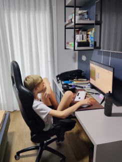Nas selfies, aquele esquema de cores fica mais predominante ainda, com o POCO deixando tudo mais quente e o Samsung mantendo os tons frios.
