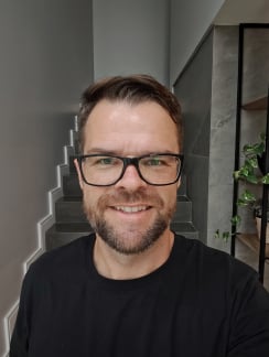 Nessa selfie escura, notem que o POCO optou por suavizar a pele, escondendo o ruído da imagem. Já o A36 pegou mais detalhe, só que deixou a selfie com bastante ruído.